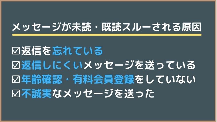 あなたが送ったメッセージが未読・既読無視される原因は次の4つです。
