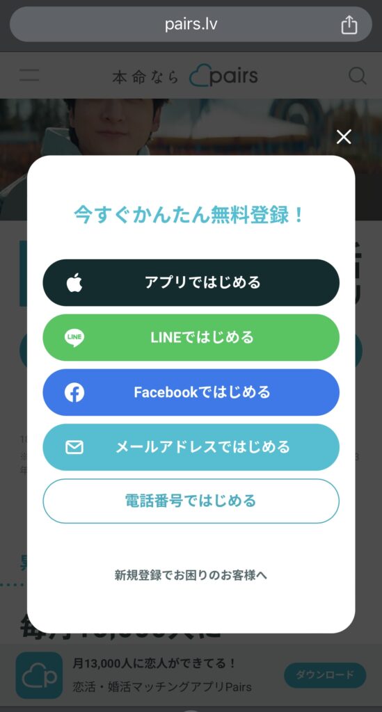 ここまではペアーズの登録方法(サインイン方法)の方法についてお伝えしてきました。